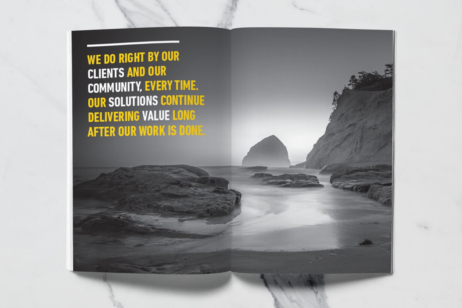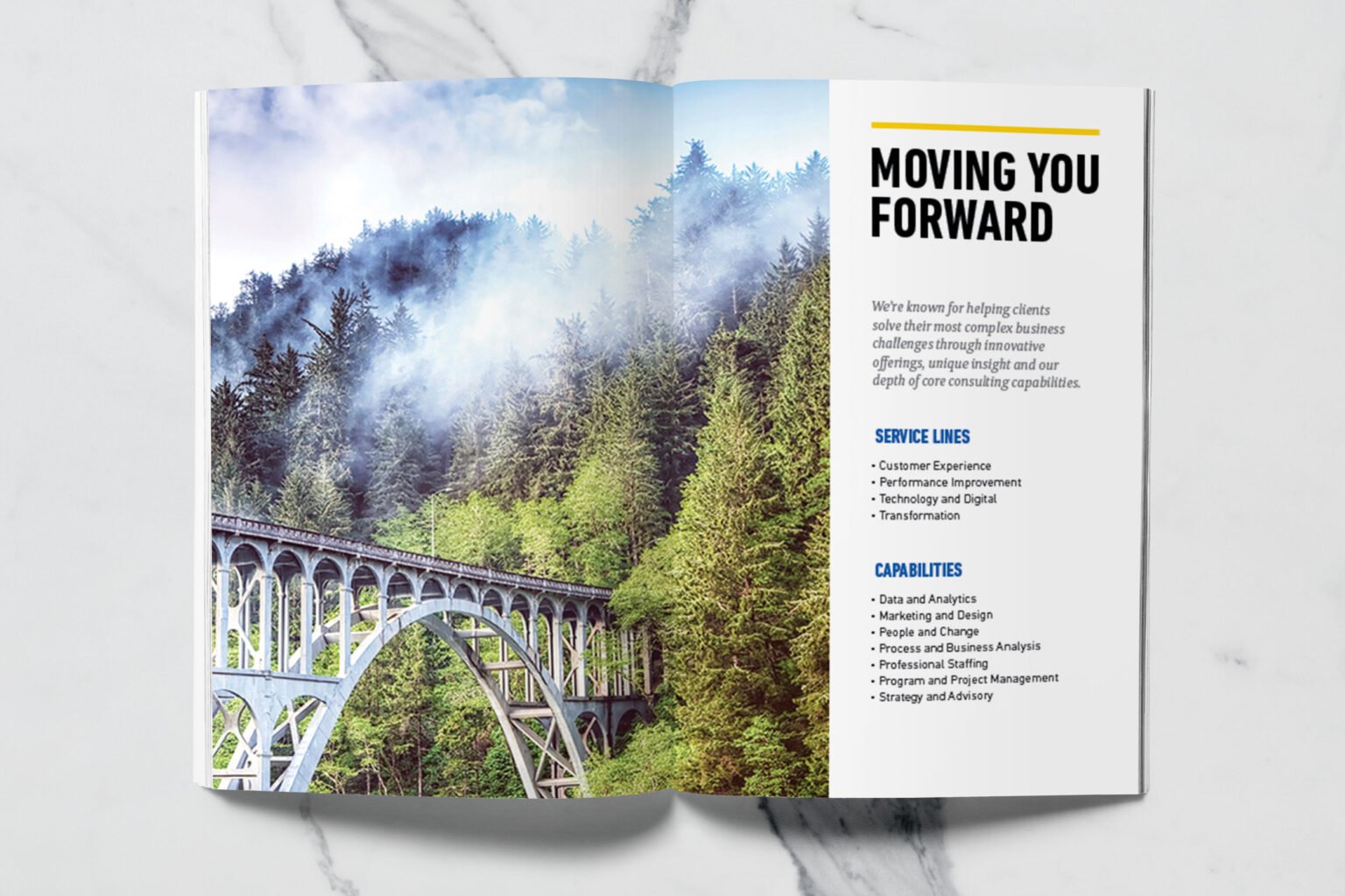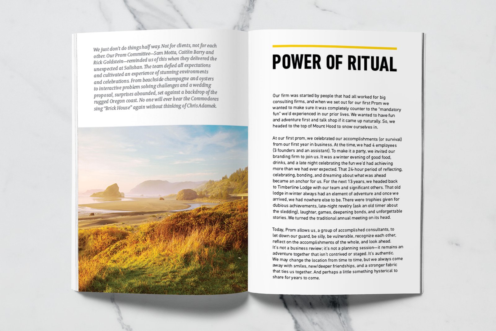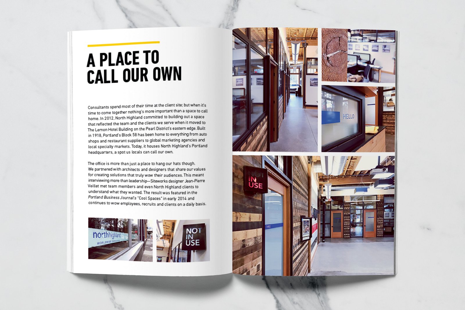 North Highland, a global consulting firm with a Portland office, wanted to create a premium printed lookbook that captured the spirit of Oregon’s business community — rugged, creative, and unafraid to forge new paths. The firm works with Portland’s top business leaders to solve critical challenges across diverse industries, and they needed a piece that embodied that same energy: industrious yet sophisticated, bold yet authentic.