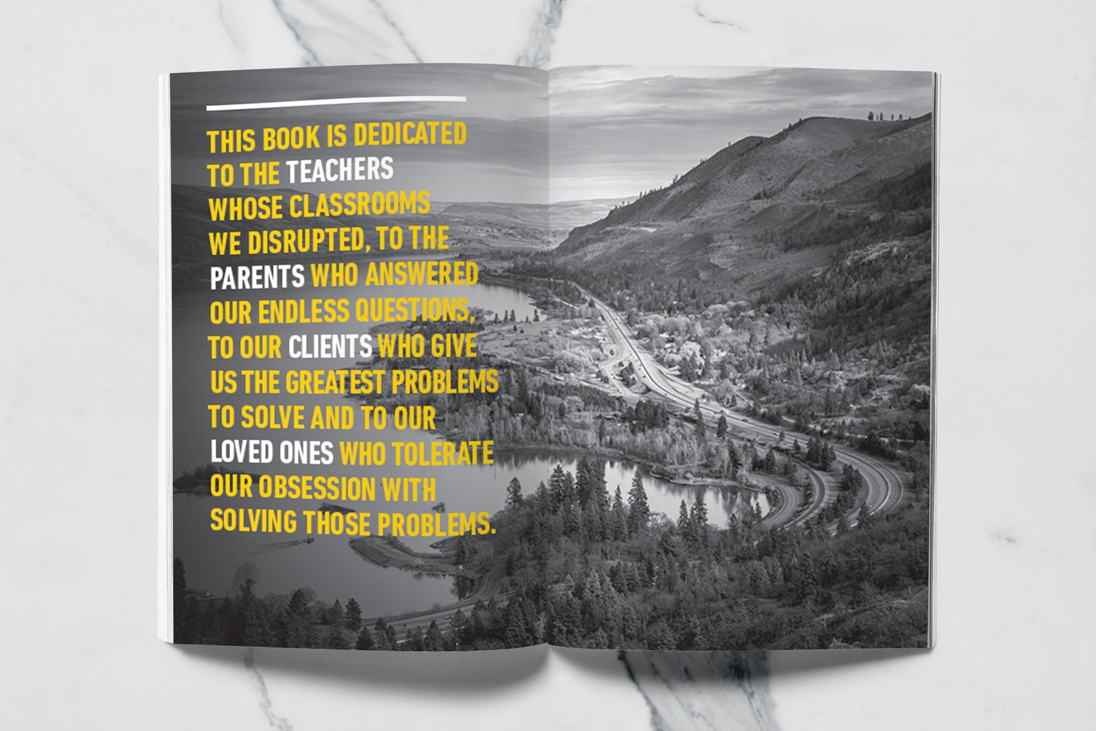 The narrative within the book paid homage to teachers, parents, clients, and loved ones — the individuals who shaped the minds and missions of North Highland’s consultants. Through thoughtful design, refined typography, and elevated production techniques, the final piece became more than a book; it was a tribute to innovation, collaboration, and the human spirit that drives meaningful change.