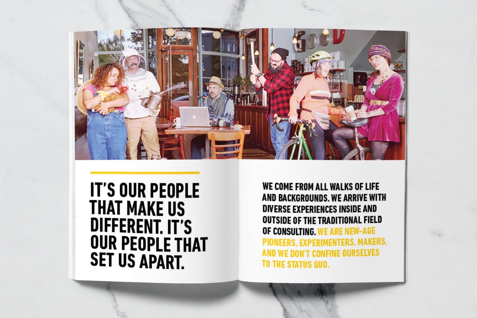 I was contracted to design and produce a high-end lookbook that would serve as both a marketing piece and a statement of identity. Drawing inspiration from Oregon’s industrial heritage and creative culture, I designed a tactile, beautifully crafted book featuring debossed, foil-stamped lettering and custom photography throughout. Every page celebrated North Highland’s belief that it’s people—their diverse experiences, curiosity, and drive—that set them apart.