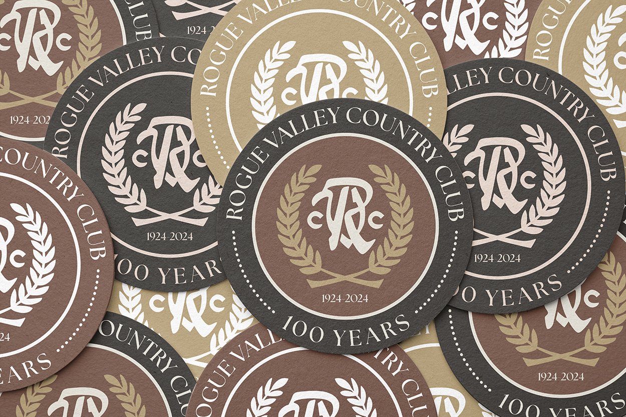As southern Oregon’s premier golf and country club, Rogue Valley Country Club sought a distinctive brand identity to commemorate its 100th anniversary — a milestone worthy of its legacy. The challenge was to honor the club’s rich history while refreshing its visual identity to feel modern, refined, and celebratory. The centennial branding needed to resonate with long-standing members and new audiences alike, uniting tradition with sophistication.