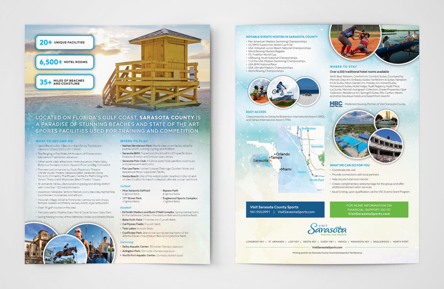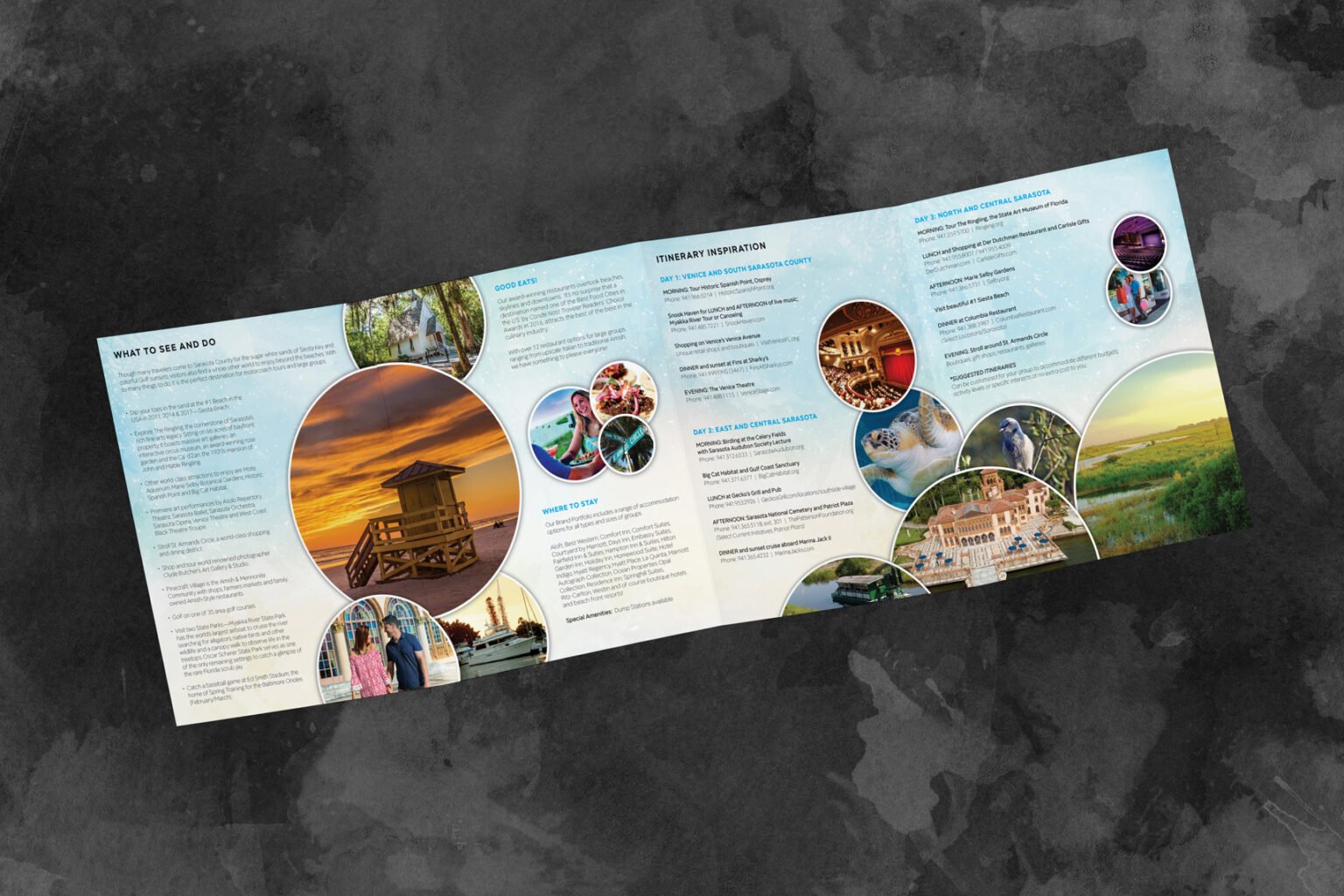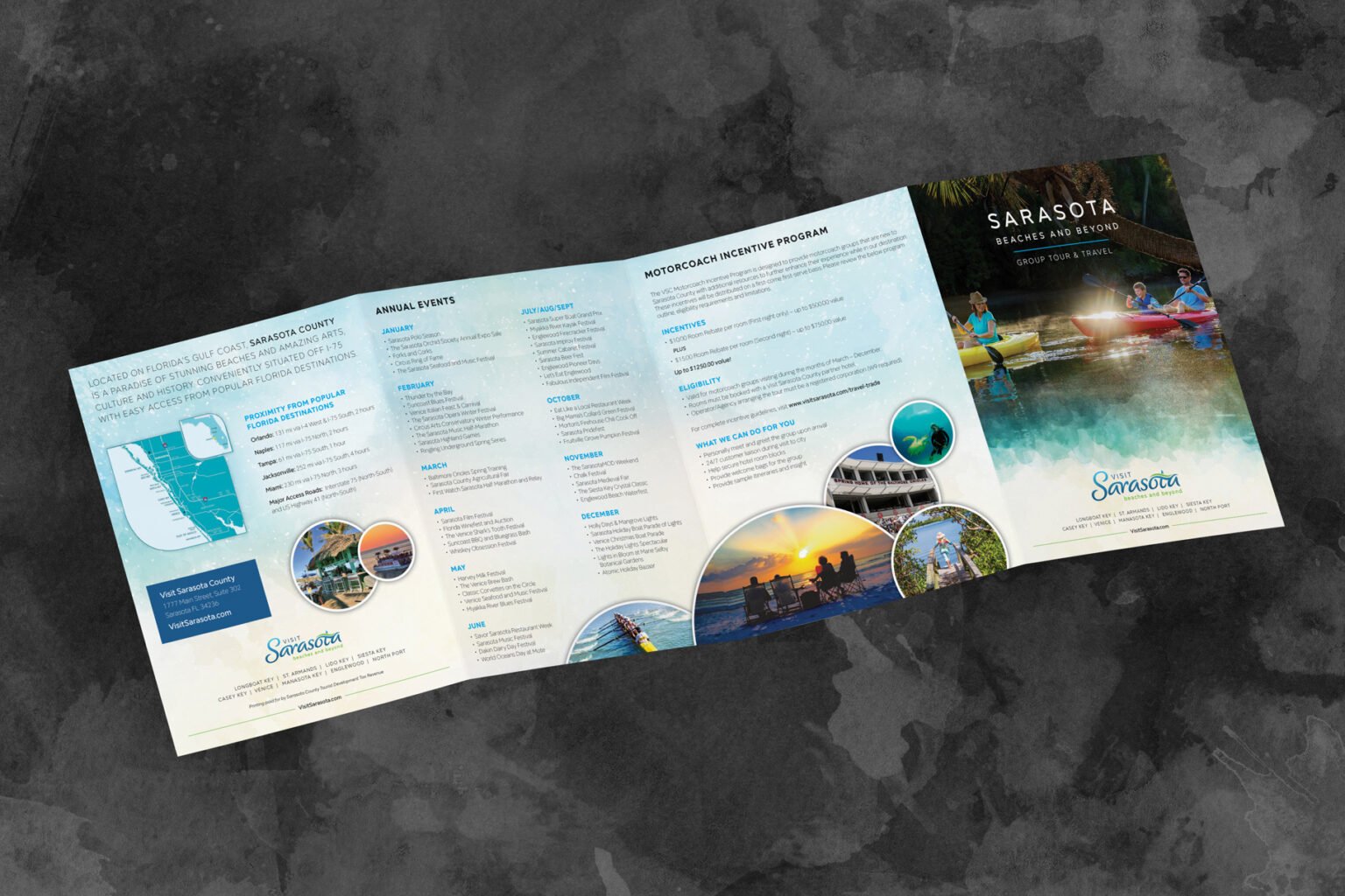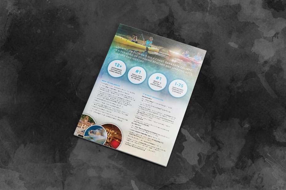 As the official tourism marketing organization for Sarasota County, Visit Sarasota County plays a vital role in promoting the region’s economy and identity — where tourism is the number-one industry. The organization needed dynamic, cohesive, and visually captivating materials that could inspire visitors, engage local partners, and reflect the beauty, sophistication, and diversity of Sarasota itself.